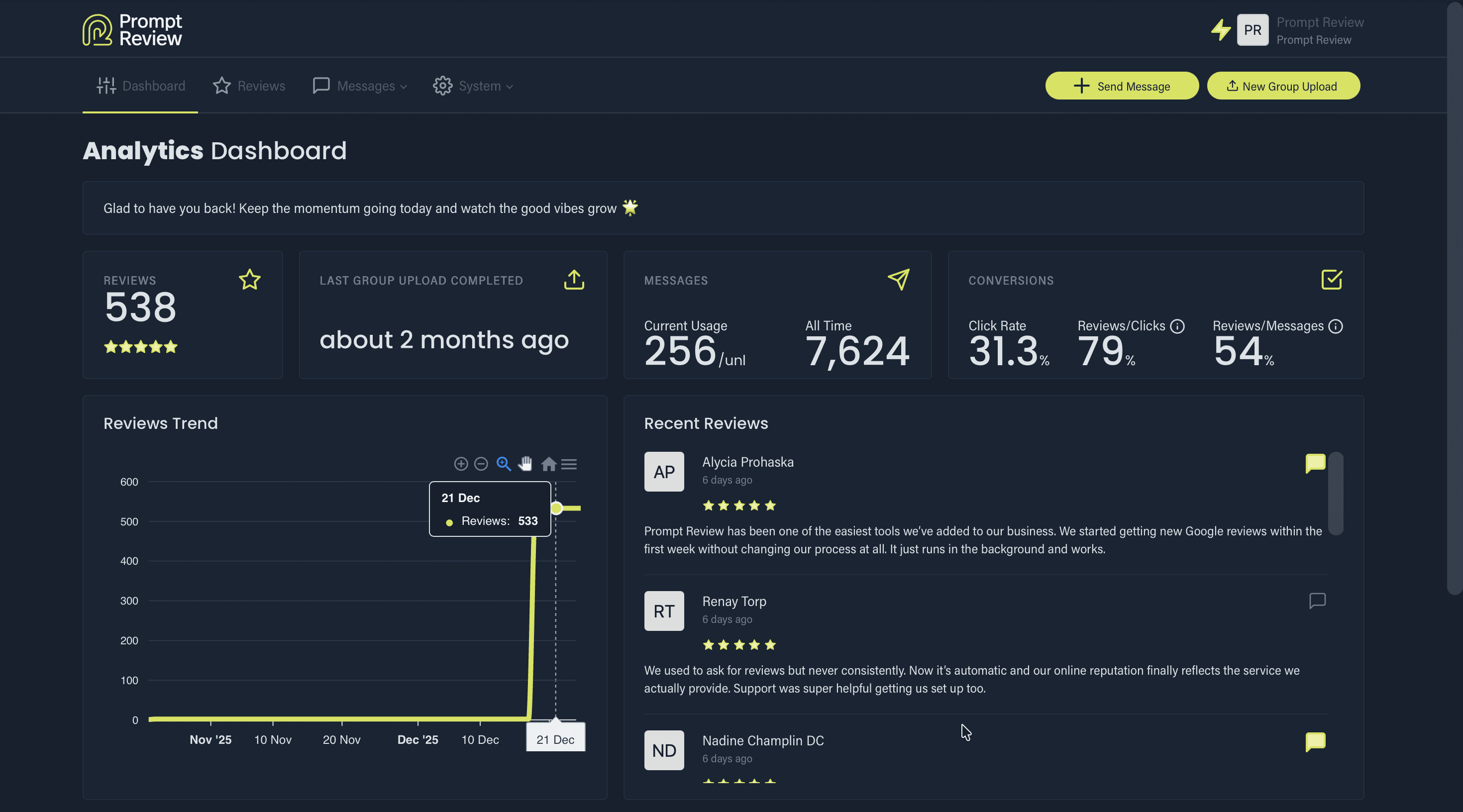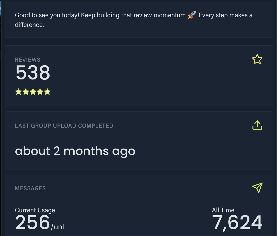 Monitor messages, link clicks, and watch your Google Reviews grow right from your dashboard.